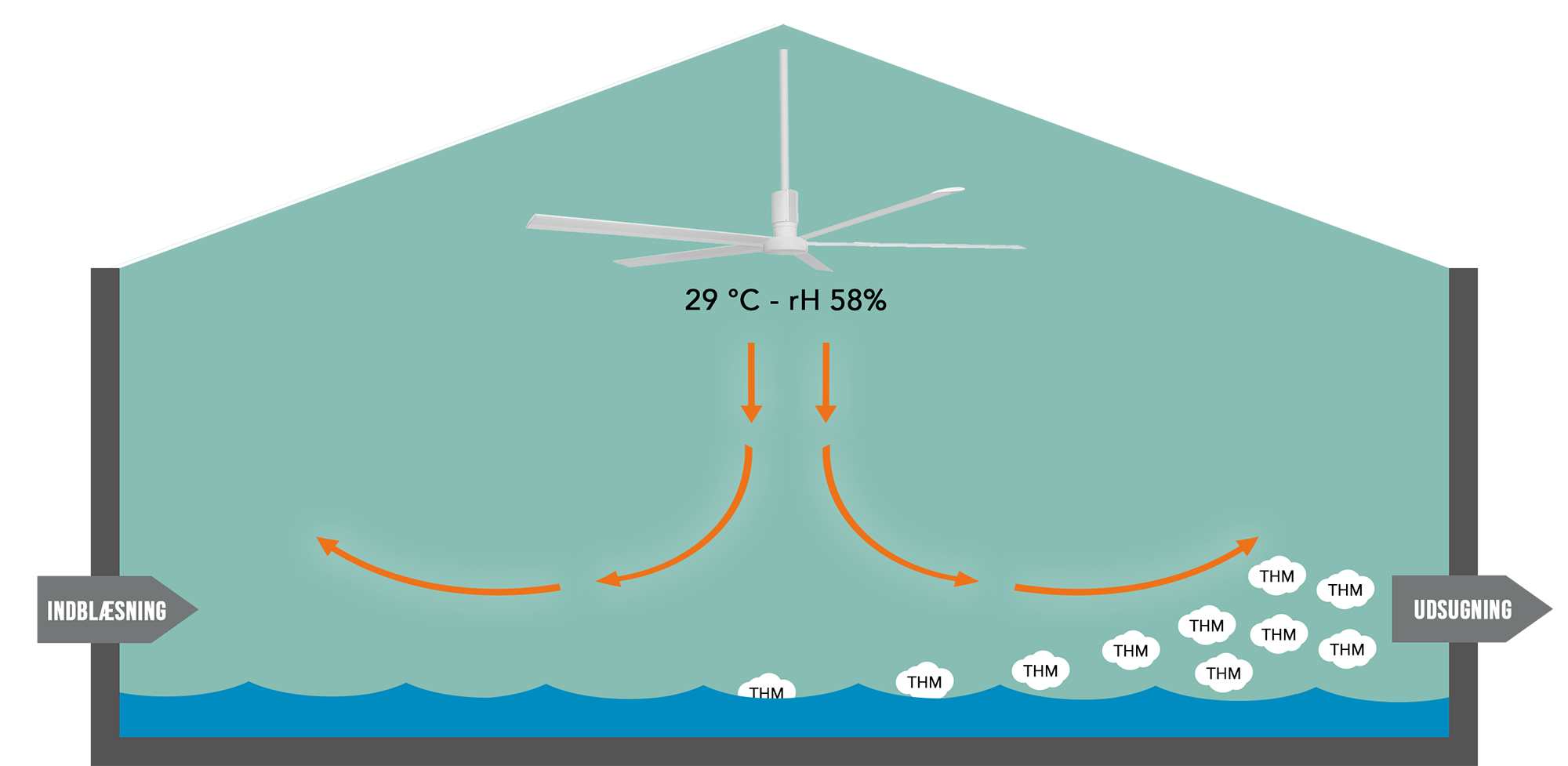 Drifts-reguleringerne skete trinvist og projektdata blev fulgt nøje. Der blev bl.a. reduceret på friskluft-spjældets minimums setpunkt og på lufttrykket i ventilations-anlægget, efter HVLS ventilatorerne blev sat i drift.