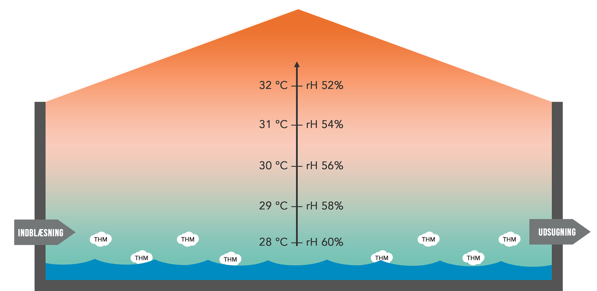 Langsomt fandt man det optimale niveau for både ventilationsanlæg og HVLS ventilatorer. Ved afslutningen på indreguleringsperioden var ventilationsanlæggets effekt reduceret fra 27 til 16,5 kW (se figuren).